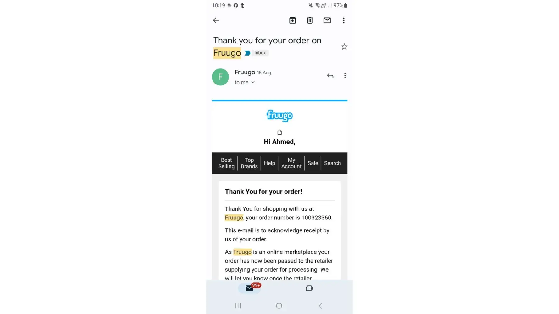 I paid for an item on fruugo.com and was quickly sent an email notification that my order had been received