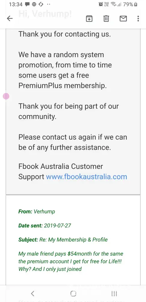 By the morning the same profile had their "FREE LIFETIME PREMIUM + MEMBERSHIP" revoked to free membership.