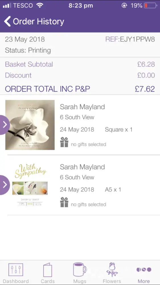 I've very disappoint in this company I have order so many cards from them before. I've never had so much stress over a card I order 6 days ago that has never arrived. Not only has it not arrived I've recieved a card this morning from funky pigeon which is my address but someone else's card. Which suggests my card has been sent to the wrong address as well. Not only am I disappointed that my card hasn't arrived I'm yet to hear back from the customer service team. The man reason I ordered this card was for my nanas birthday which is Friday the 17th which is now tomorrow and I have no card to give. I dont know where i stand so i have paid money for something that hasn't came. However I also order a card on Saturday which came on Monday. So I don't understand how they could make such a mistake.