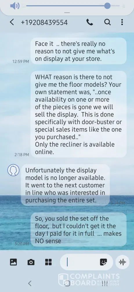 5. We decide to go in person and ask why there was so much delay. We spoke with Lilliana. She said the furniture was coming from overseas and most likely the delay was due to Covid. Is Covid just the excuse for everything? The first time we bought furniture we were in the thick of the covid pandemic and the furniture still arrived within a month a half.