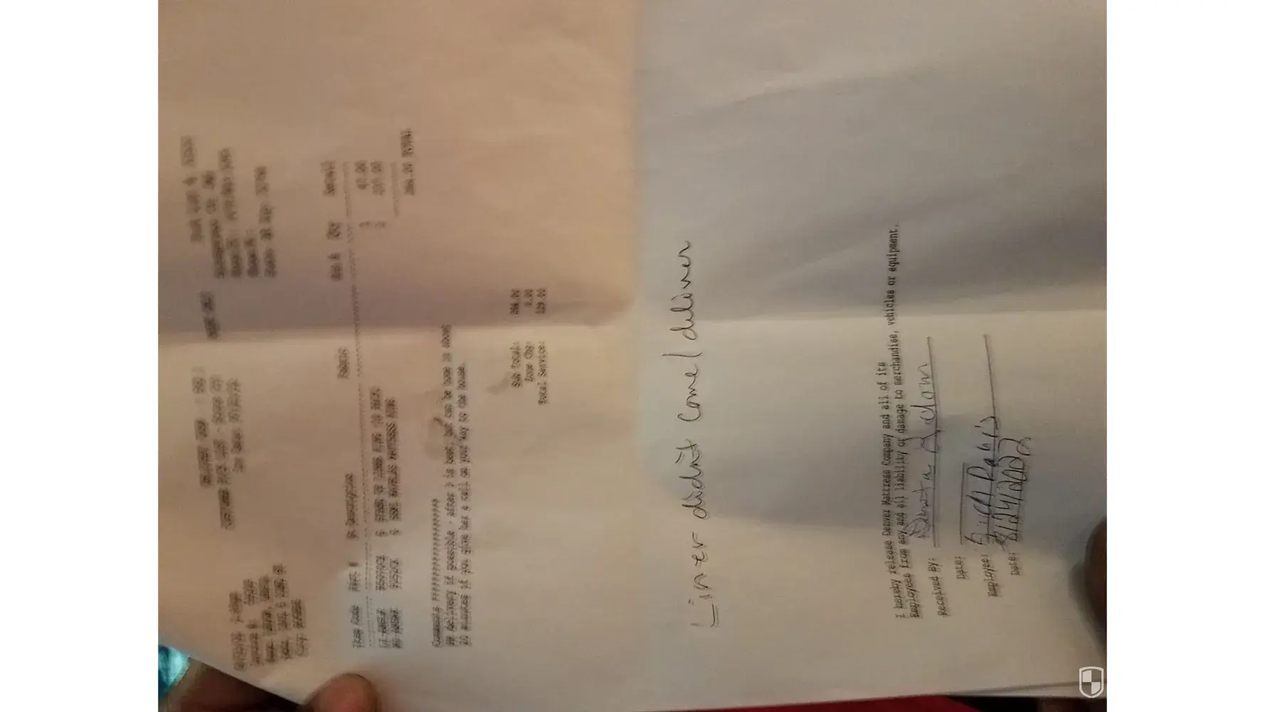 I purchased a waterbed mattress and liner July 23, 2022. I also purchased delivery and set-up. I was told the waterbed mattress and liner would deliver 1.5 - 2 weeks. However, the sales associate wrote 2-3 weeks on the invoice. I called Tuesday, 8/23/22 (4 weeks after purchase) and was told the items would deliver Wednesday, 8/24/22. Unfortunately, the liner didn't deliver. I accepted the waterbed mattress and signed the delivery receipt only after I wrote "liner did not come / deliver" on the delivery invoice. When I called Furniture Row to ask them to credit my card for the liner, they told me I would have to come to the store with the item to receive the refund to my credit card. I reiterated that I didn't receive the liner...it was impossible to return something that didn't deliver. I told them I had the delivery receipt with my writing of "liner did not come / deliver" that I would email to them. They said that wouldn't work and they couldn't "do anything" until I came to the store and returned the item. I also paid extra for delivery and set-up. I asked specifically if they had personnel with experience setting up a waterbed. They assured me they did. However, they managed to knock my frame out of place and pulled my headboard approximately three inches from the wall. The frame was fine until they manhandled the new waterbed mattress into place. They also did not put the conditioner into the bed or burp it after filling it with water. Obviously, they did not provide the service I had paid for and in fact left me with a large mess that I am unsure how to solve short of draining the waterbed mattress and attempting to re-level my frame and change the location by myself. If I felt I was capable of performing that function, I wouldn't have paid for delivery and set-up in the first place.