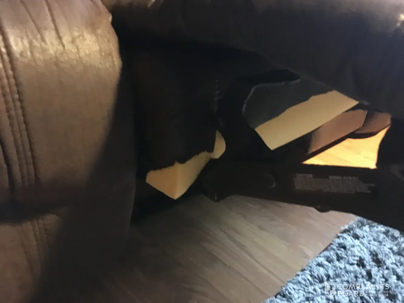 On 8-9-2014 we purchased a recliner for $2200 from the Fort Worth Store. Was delivered and all was fine. Order number: 41833 On 7-1-2015, we noticed the foot rest of the recliner not pushing out and retracting correctly. When we lifted the chair up on its side, we found large amounts of wood chips under the chair? We called the normal "service" number on...