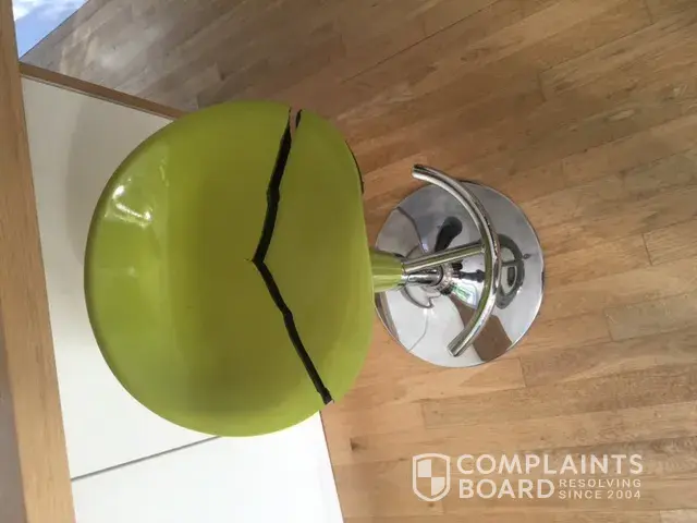 We had one stool replaced eventually which was a nightmare in itself to get sorted, and then the other 2 stools went the same way so that's 4 in total. Trying to get a personal or genuine response was impossible and we gave up and today have thrown away the last of the stools which has prompted me to write this review. PLEASE PLEASE PLEASE save your money and the stress and spend your hard earned cash elsewhere rather than hand it over to this excuse for a company. Never buy from them no matter how cheap you might find them. Its not value for money when it ends up as garbage.