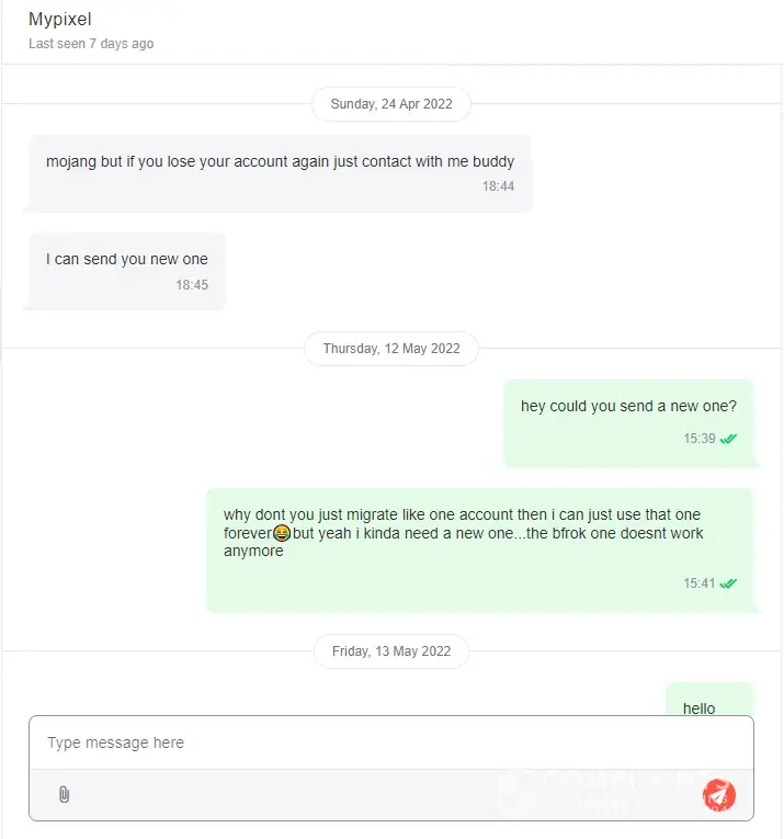 Desired outcome: Firstly, I would either like my refund in full to my bank account, or I would like the seller to keep his agreement and continue my "lifetime warranty" in which he provides me with accounts.