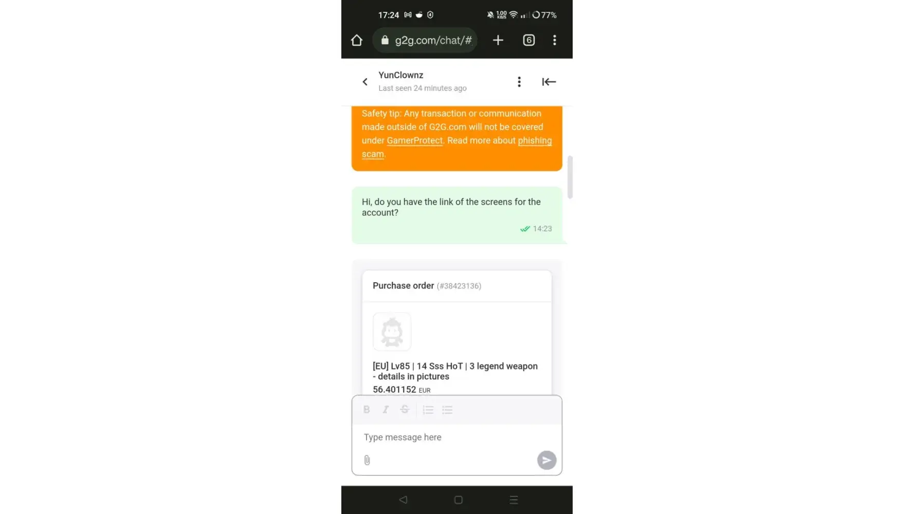 Update: the seller don t answer he seen my messages and still don t answer if he got or not my money, why is soo many scammers on g2g…