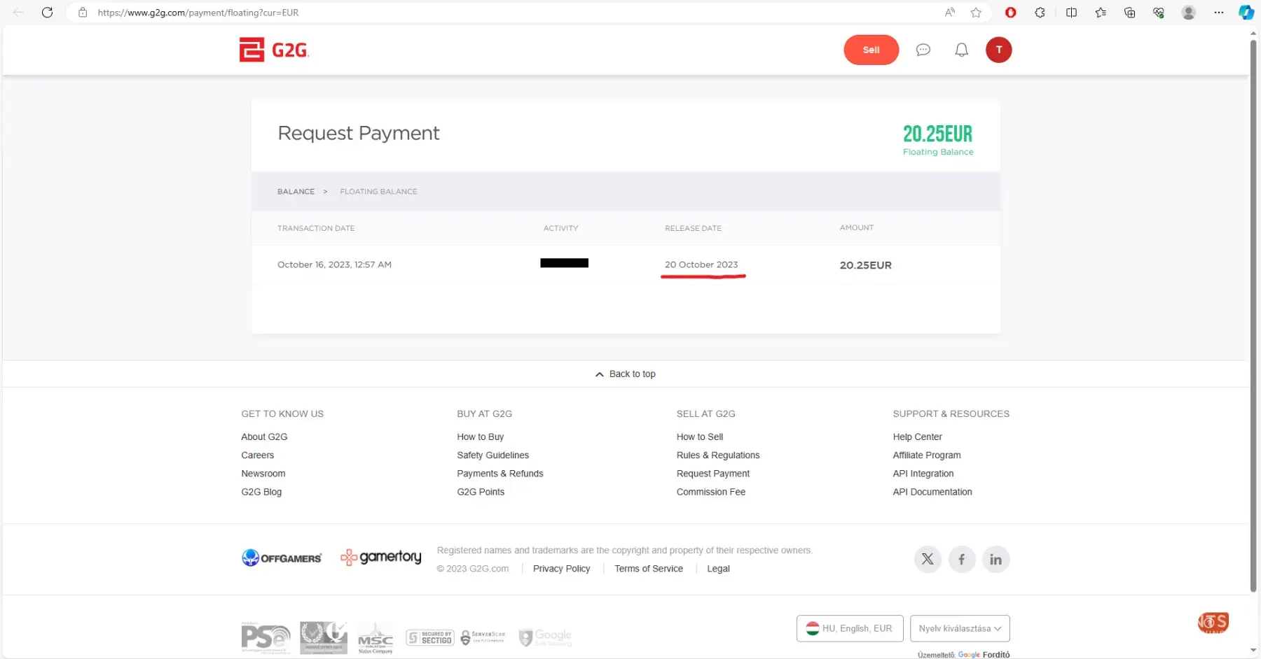 I've sold a game currency at October 16th. (In my information the money release is 3+1 day for my account, so October 20th is the payment date). Its almost October 22th and my money still on floating...
