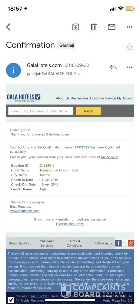 Up to this date we did not receive any answered to our complaints from GALAHOTELS.