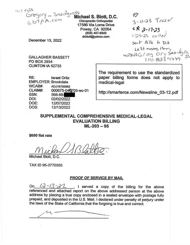 On 11/15/2021 My office submitted a claim to Gallagher Bassett for a Medical-Legal Evaluation that I performed on a Workers Compensation Claimant.