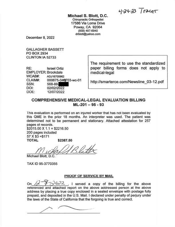 Unpaid QME billing