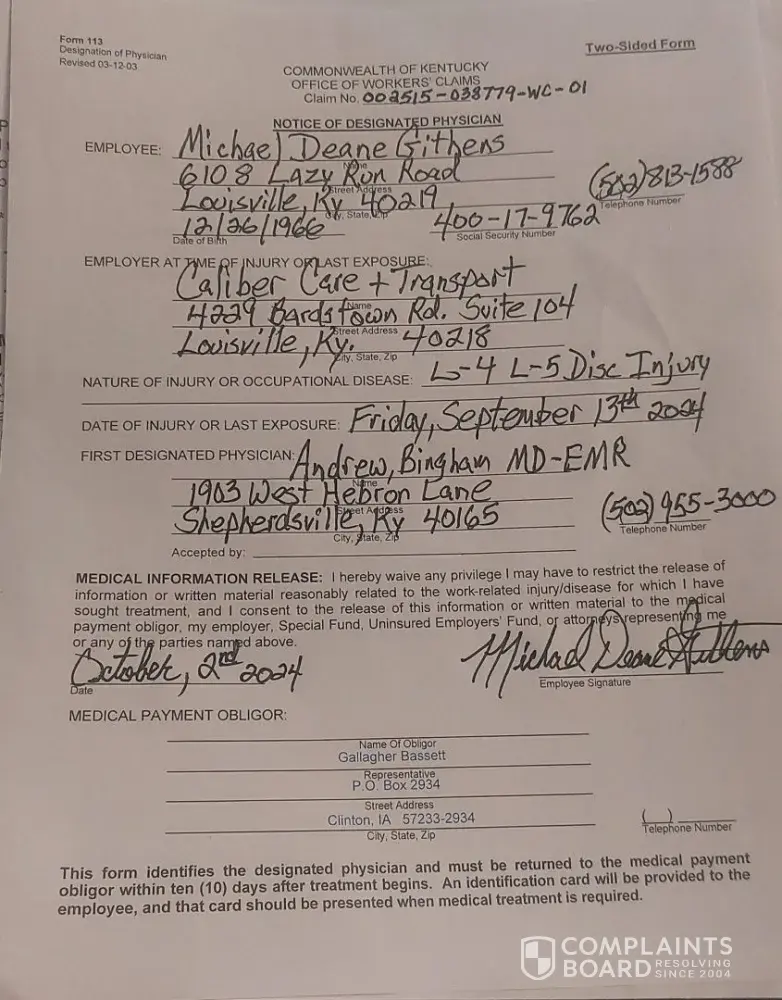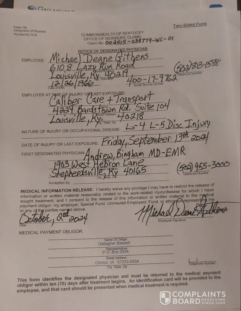 i was injured on the job 3/14/22, my orthopedic ordered 6 weeks off work and 4 weeks of physical therapy. i have yet(4/20/22) to speak to the adjuster assigned to my case, nor receive any treatments or benefits. they are a paid insurance company by my employer to supply benefits in case of an injury , which they have failed to do so. counterintuitive to any progress or returning to work. Claim [protected]-wc-01. seems to me lawsuits must be quite heavy against Gallagher Bassitt based on reviews and other complaints. Jennifer Voelkl is the "resolution" manager on my account. ironic the lack of "resolution"