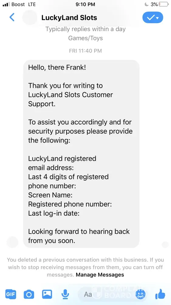 Luckylandslots.com - Stuck in verification, support won't help