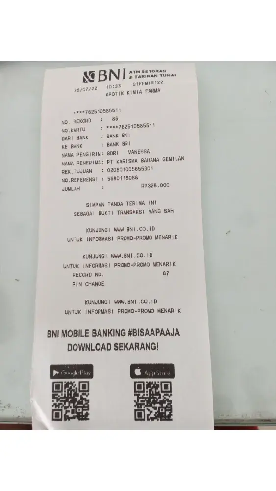 3. Slip pembayaran untuk mengambil uang dng cara membeli product