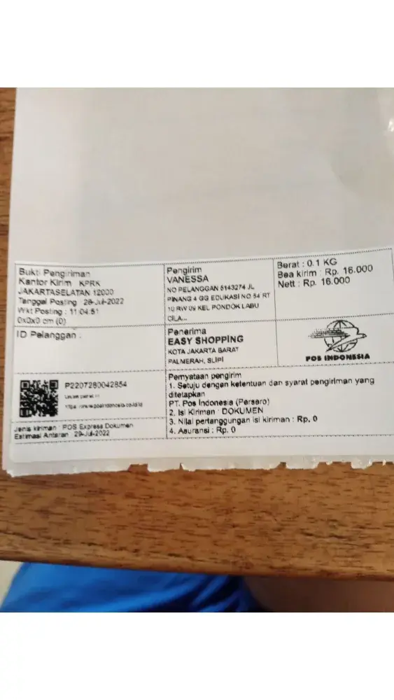 Dan saya tidak diberikan oleh easy shopping seperti yang saya buat laporannya. Alamat rumah sementara: jl. Pinang 4 gg. Edukasi no 54 rt.010 rw.09 cilandak pondok labu jakarta selatan 12450