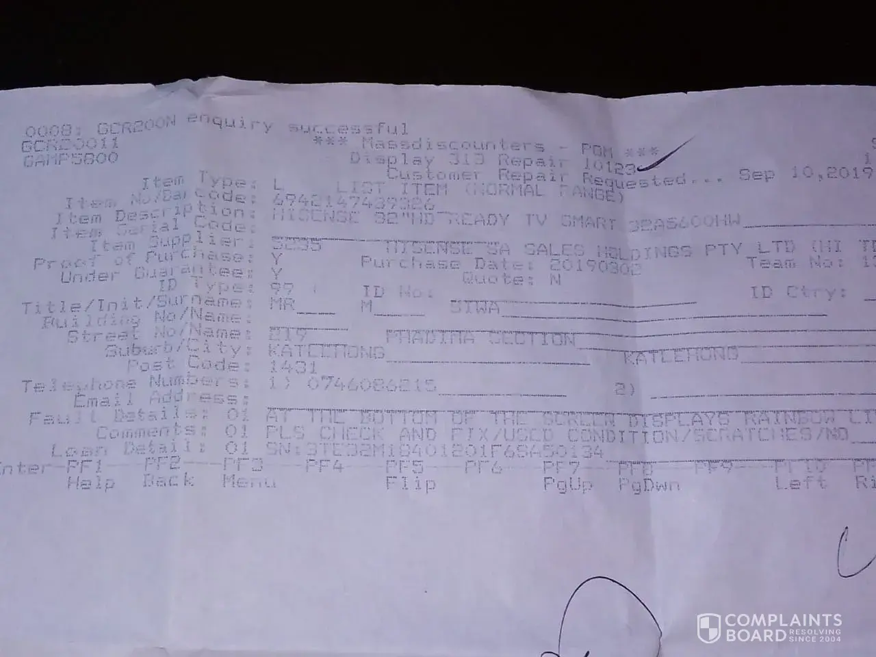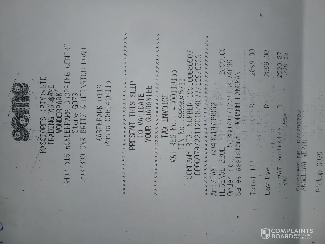 The same day another guy at Game asked me what was happening with my tv as he was also unsatisfied customer with the same issue of a Hisense Tv, I told him was happening. He told me that they won't help these guys, I must register with Hello peter South Africa and told them my problem. I was happy that another guy has the same issue as mine and he was helped because of Hellopeter SA thinking they won't give me a probrem.