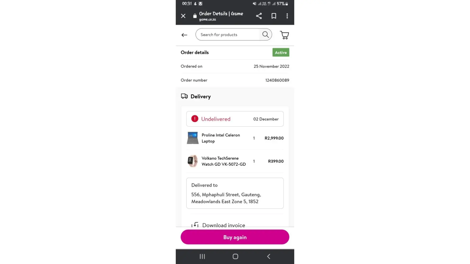 I placed an online order for a kiddies bike on 25 November, meant as a Christmas gift for my daughter. The communicated delivery date was 2 December. It's 11 December now, and I have received nothing, not even communication informing me of, and apologizing for, any delay. The assistant I phoned in connection with this was polite, but could not even get through to the store concerned - Game, Gateway, Durban - to query the delay. As of today, 11th December 2022, my order tracking says that it has not even left the store. Game needs to visit me on Christmas to explain to my 5-year-old daughter why she has no Christmas present.
