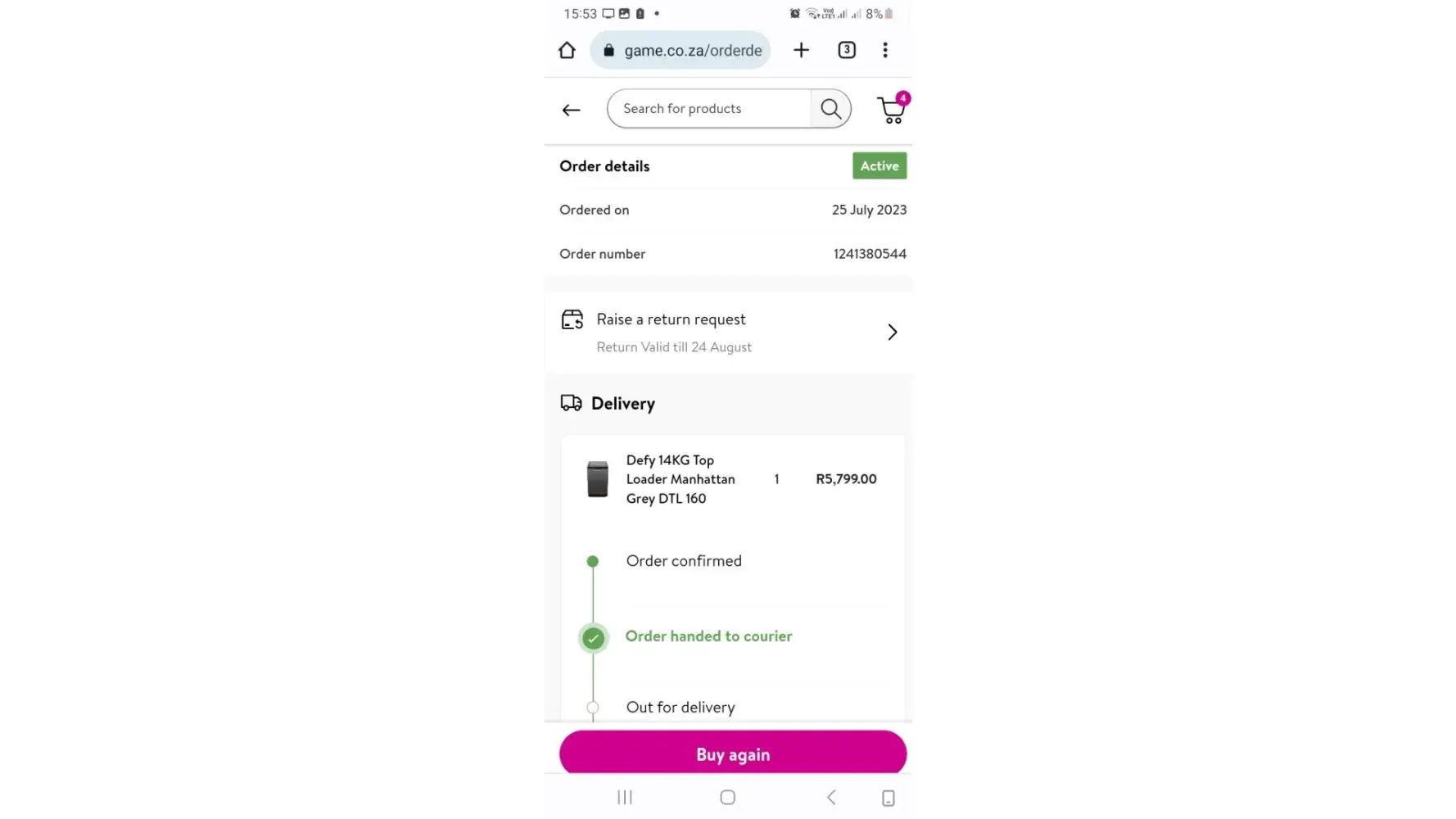 I bought a 14kg Defy washing machine online by Game( mass discounters ) on the 25 July 2023