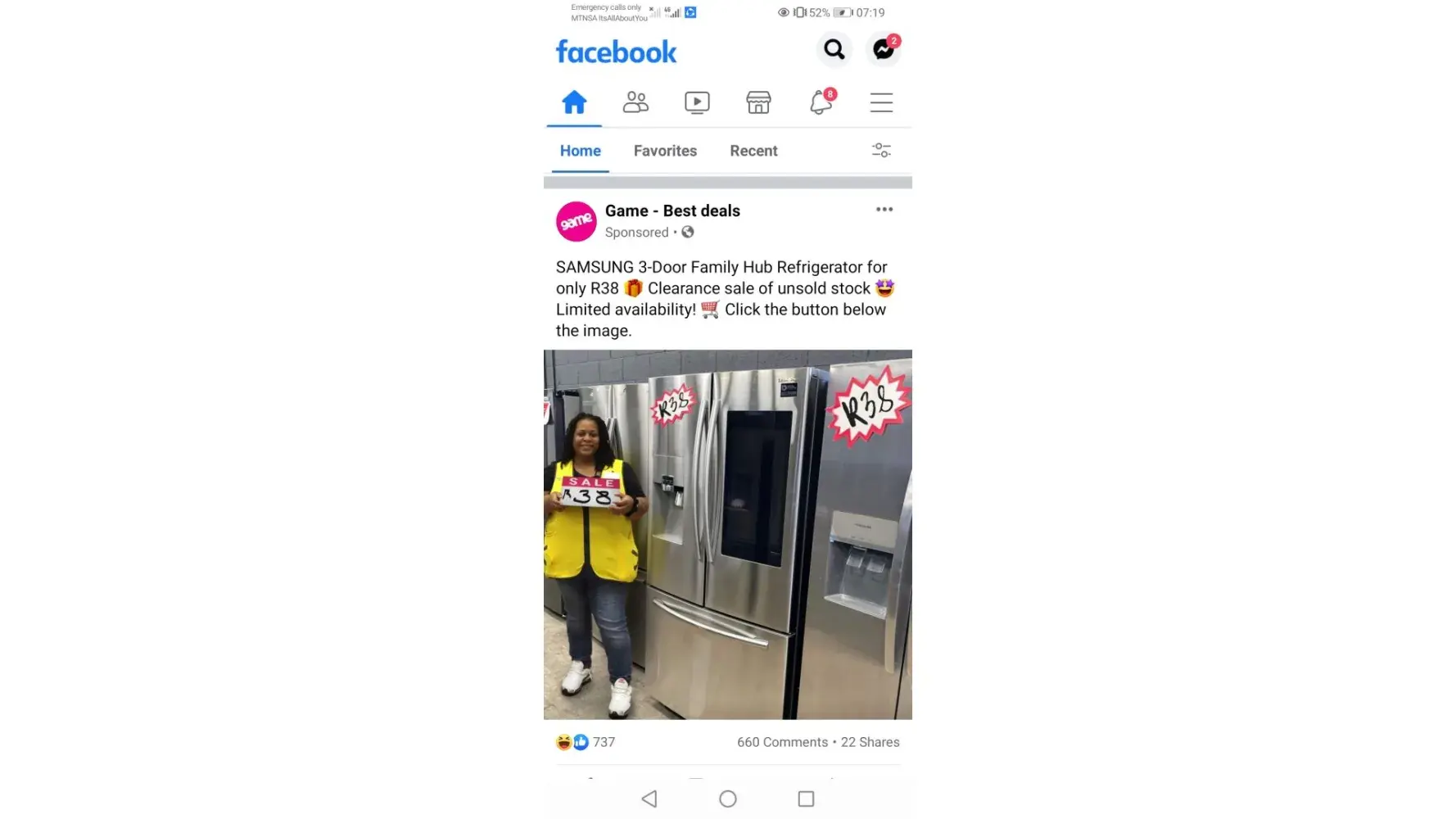 There's a promotion that's on Facebook, they selling 3 door fridge for R39 they scamming people as soon as you paid that R39 they deduct money from your account. The name of the store is Game. Thank you