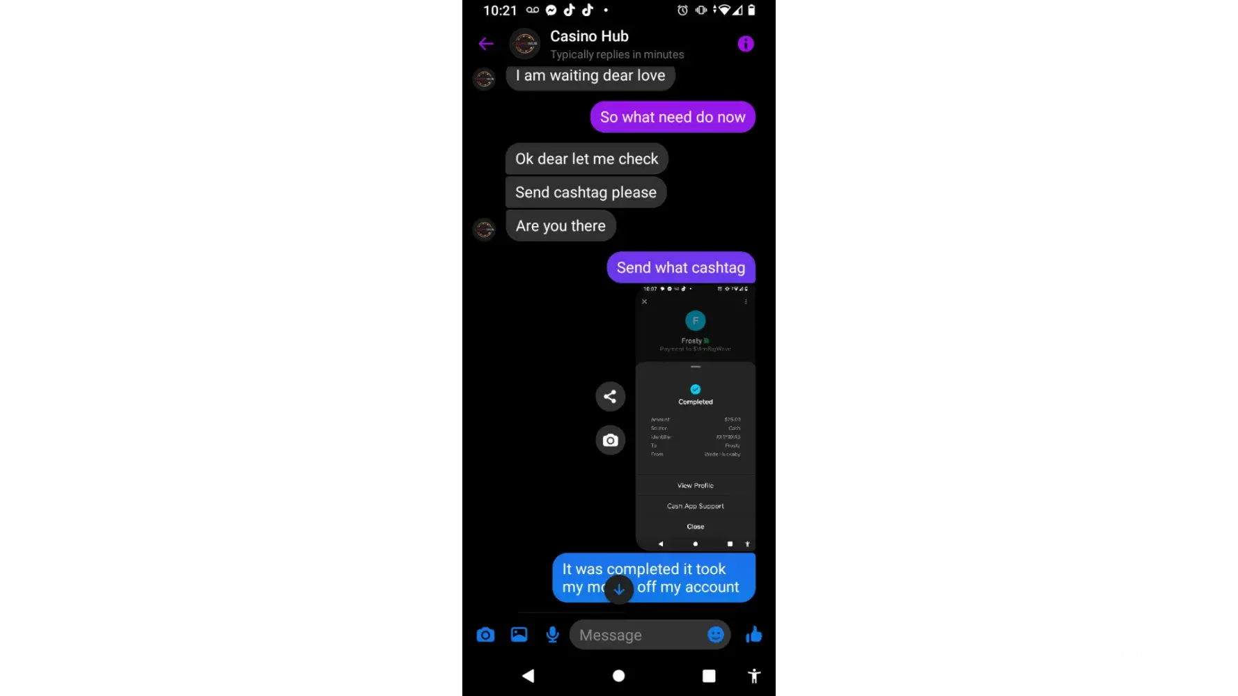 Yes i had same thing happin wirh casino hub. They took 130.00 from my accout. I tolk screen shots Before and after. Plus all the messages th n after the took the money they blocked ke trom being able too message them there got be something can be dun about this. I dont get why even have a 3rd party that just makes it easier too get scammed