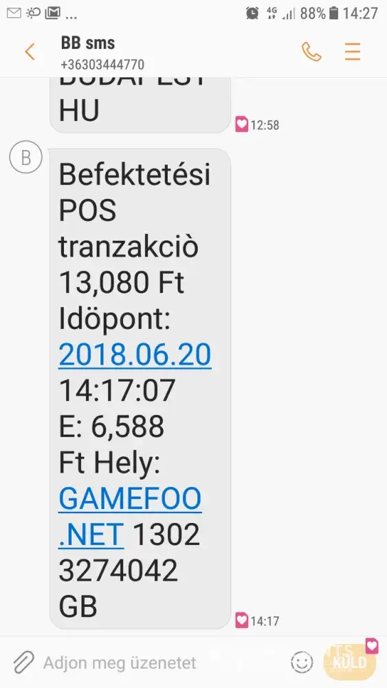 I get a message about my bank accout, and get a USD 50 amont debit from the following message: Gamefoo.net 13023274042 GB.