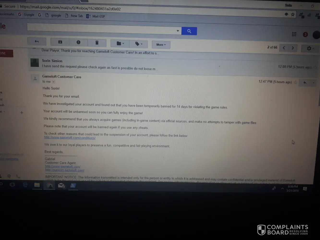 1. File a complaint on the Gameloft Web Support page (make sure you properly select the game you are playing and select the 'Banned' category). http://support.gameloft.com