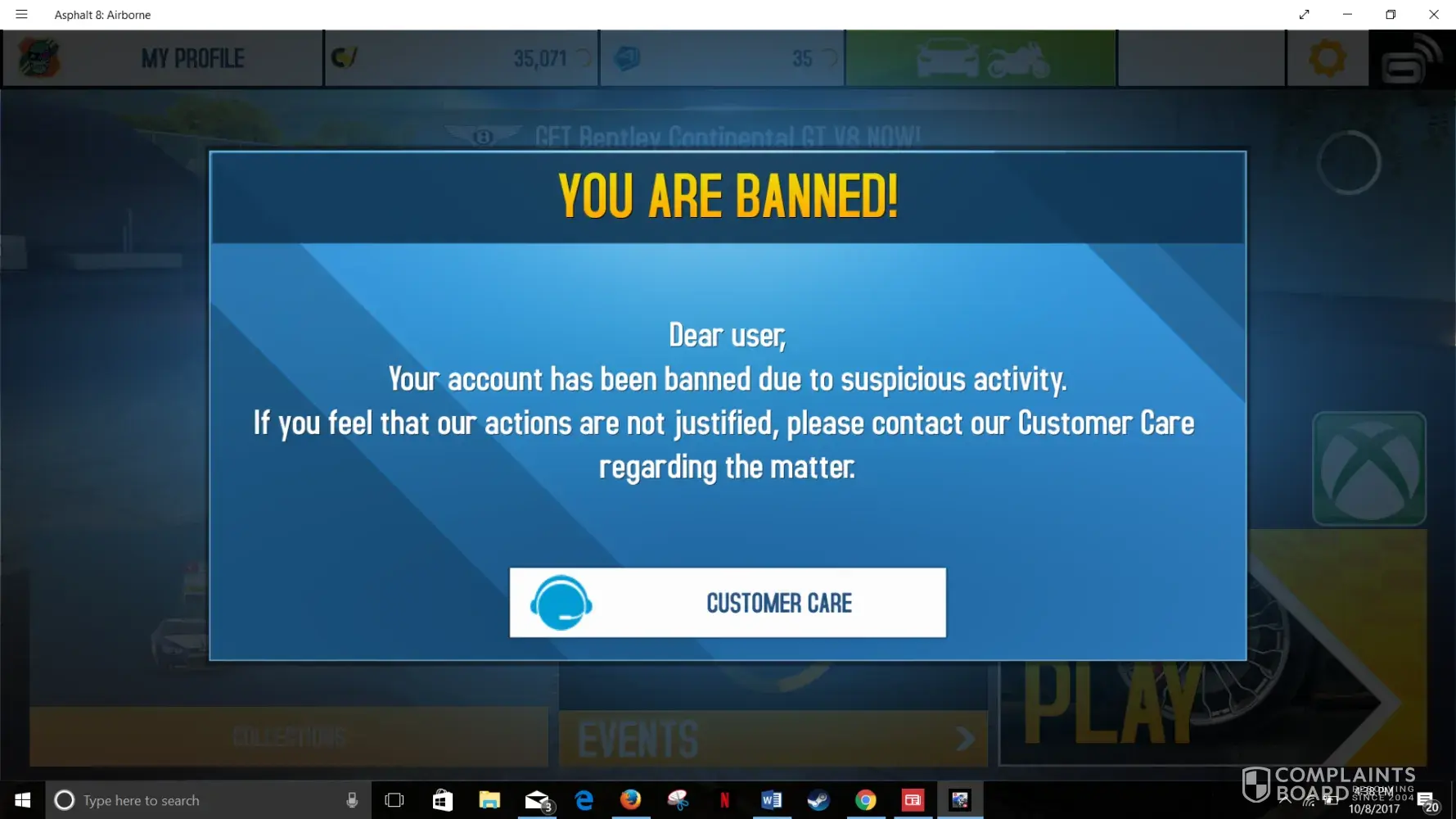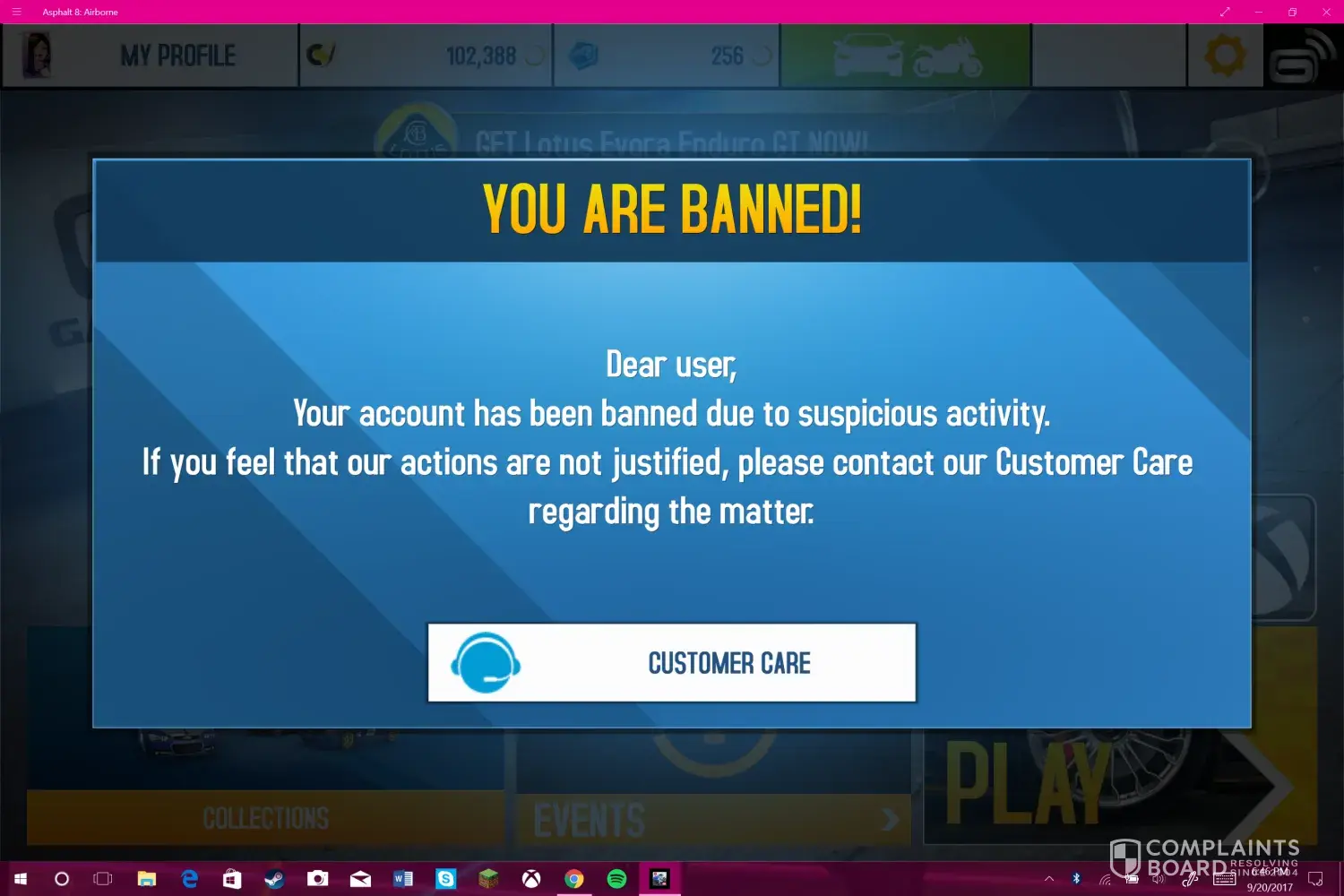 Gameloft asphalt airborne 8; i've been banned for no reason!