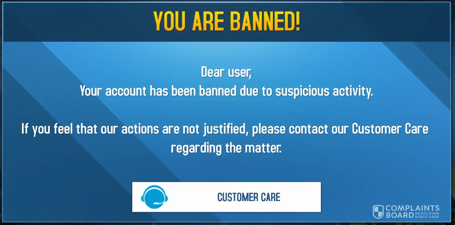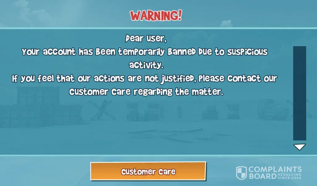 As soon as I download a Blitz Brigade it comes up "Your account has been temporarily BANNED DUE to suspicious activity. If you feel that our actions are not justified. Please contact our customer care regarding the matter" and I am here to ask you that I have done nothing and can you please fix this problem and reply as fast as you can please I want to play this game because it seems amazing.