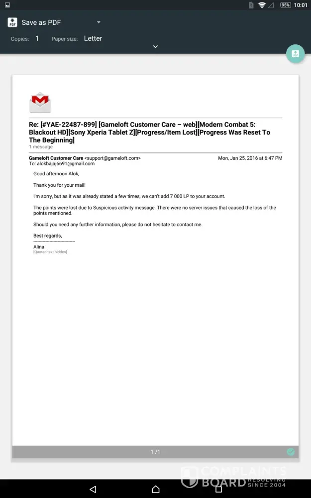 I've attached the screenshots of the emails they've sent me. On the first email they state that they've found the issue that caused me to lose my progress and they are working on it. On the second email, they deny that it wasn't their fault!