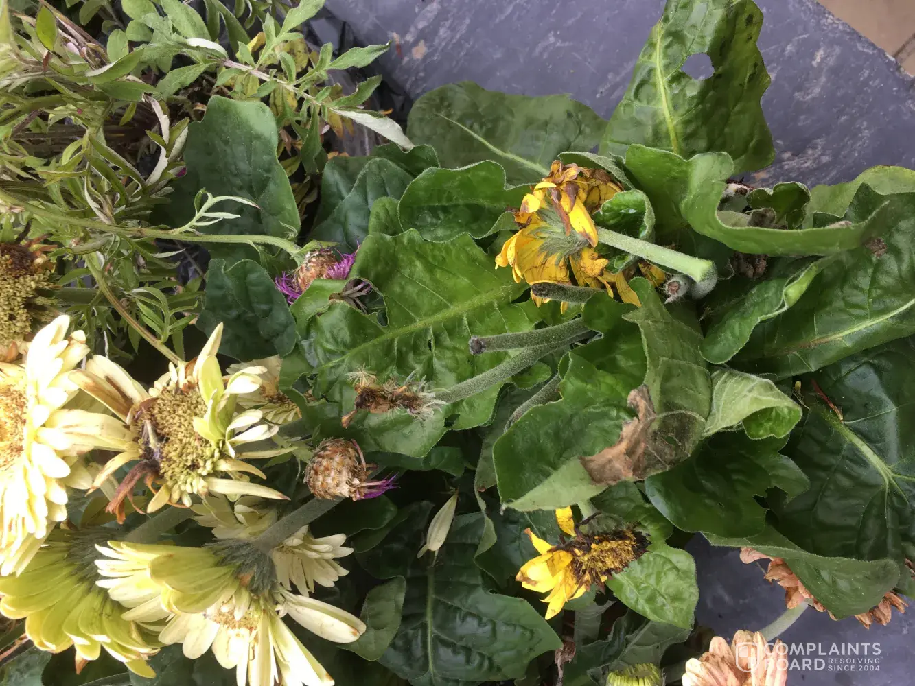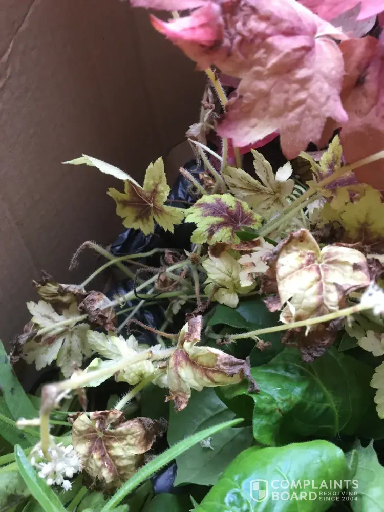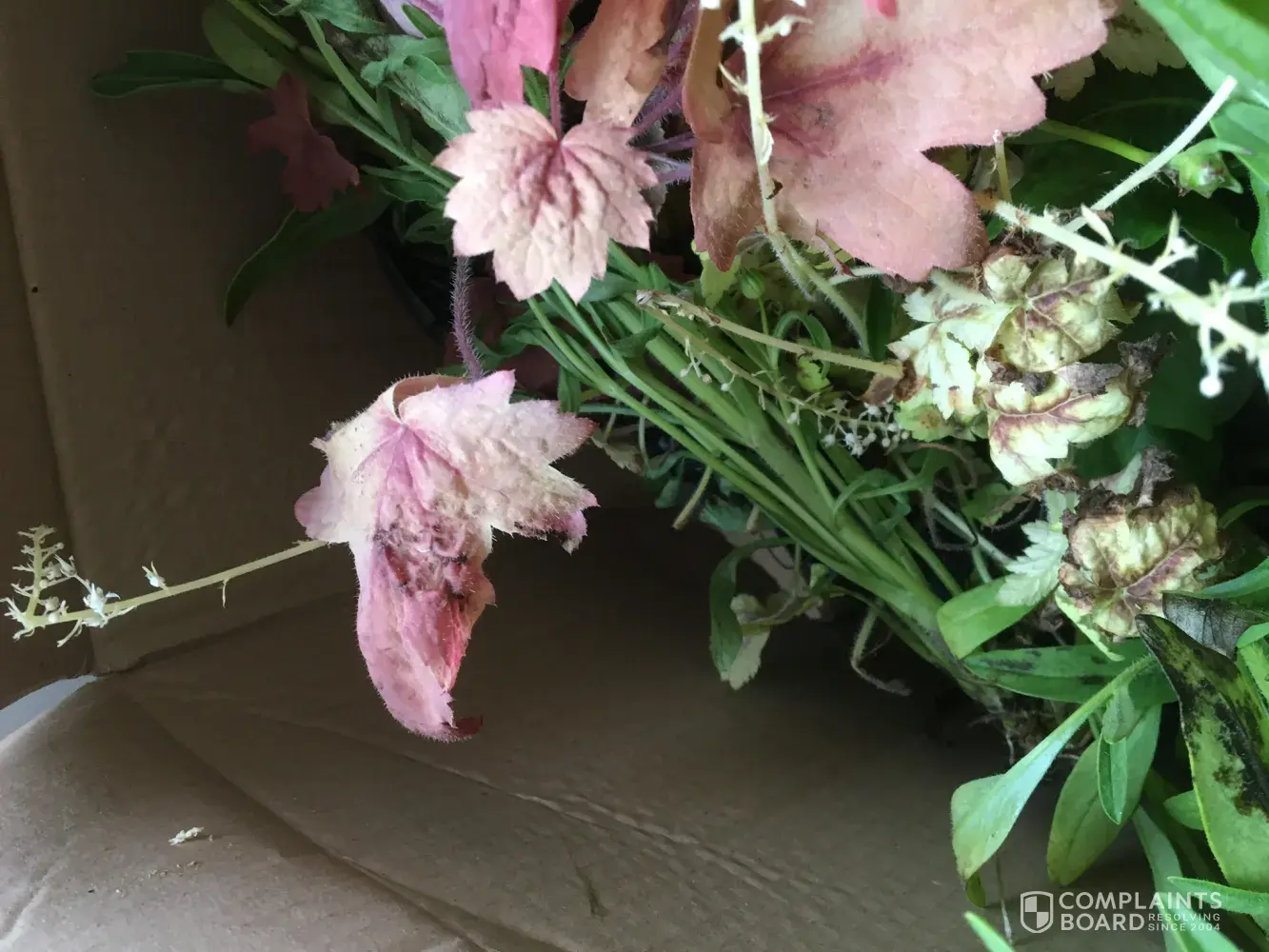 Was horrified at the way too many plants in such a small box... all the plants were utterly derived of care and water..90% of the flower heads broken off.. Not acceptable