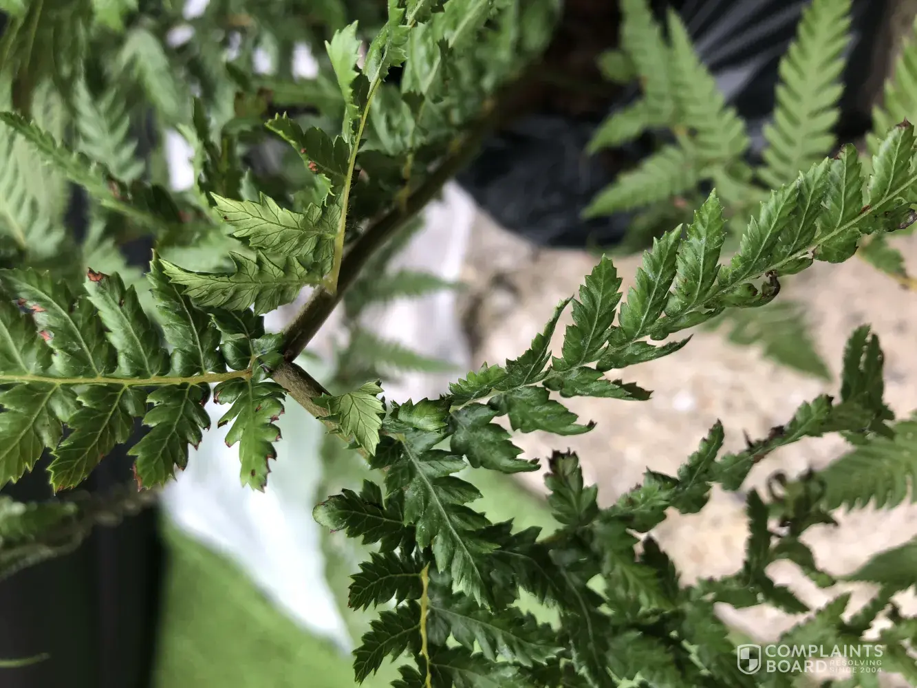 Fern arrived E15178, squashed in a box not tall enough so it arrived with 4 broken stems!