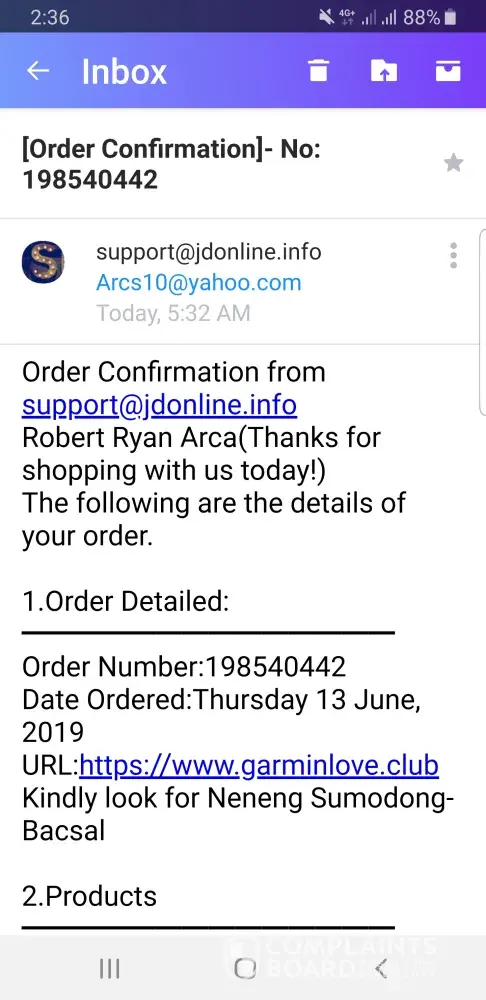 I ordered a Garmin fenix 5 watch from Garmin website and I received a Handkerchief in the parcel. I ordered this from the advertisement on Instagram which took me to a website names garminlove.club and there what I placed the order. I have some screen shots which I am going to share. I will appreciate if you can help me here. Thank you you can reach me on sanap.[protected]@gmail.com