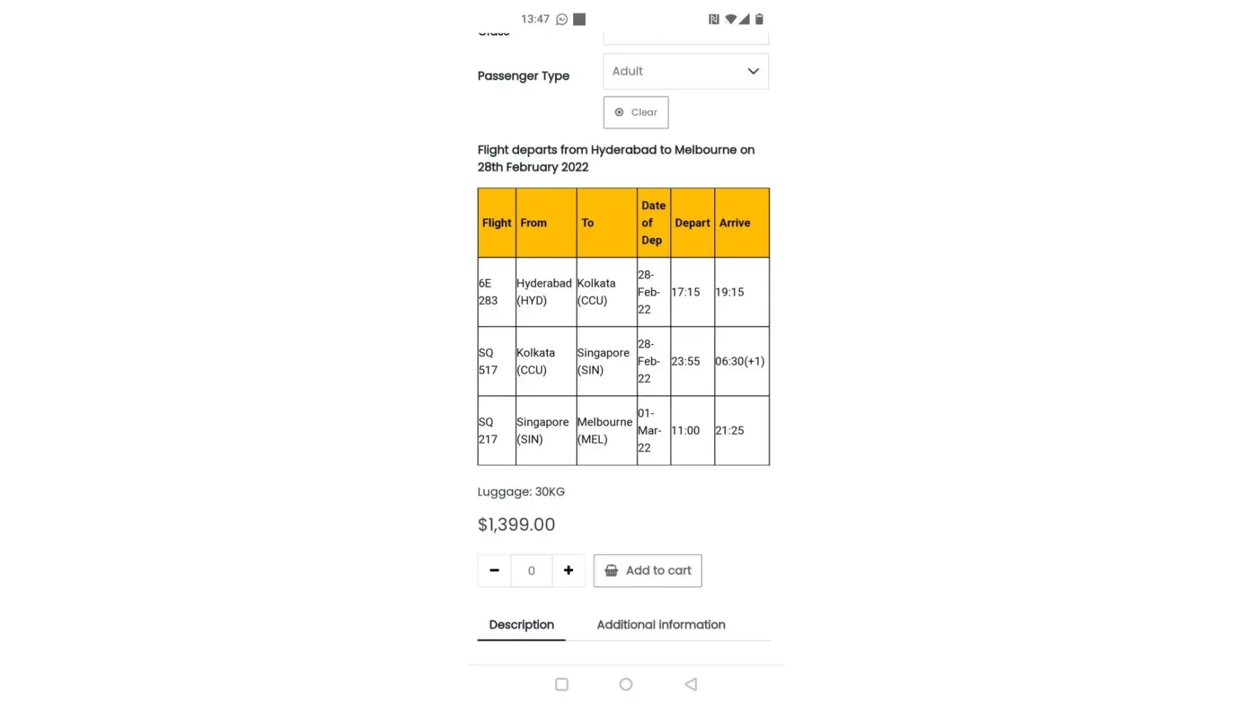I have booked an air e-ticket on 21st March 2023 from Adelaide to Melbourne connecting flight to Delhi with Qantas Airways and the agent name is Gaura Travel.