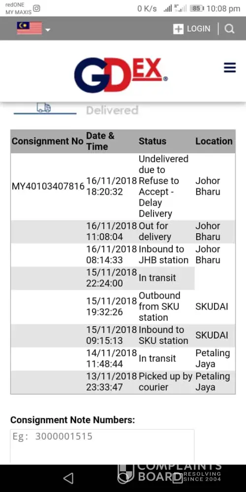 Just check on the tracking, now it seems the driver is blaming us for items not delivered. How should we even trust GDex to deliver a parcel in proper condition. Firstly the driver too lazy to go deliver to doorstep and now accuse undelivered due to customer request.