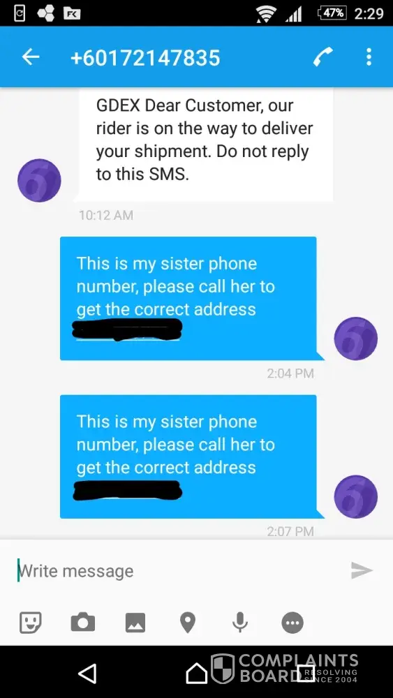I want to complain the gdex customer service staff is too worst service & gdex no is a trustly delivery..