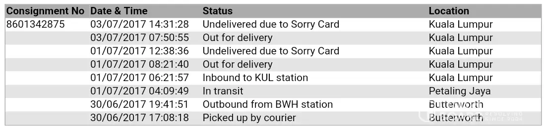 GDex / GD Express goods not delivered and false status updated