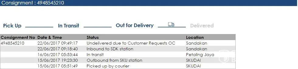 18/05/2017 17:34:57 Picked up by courier Petaling Jaya