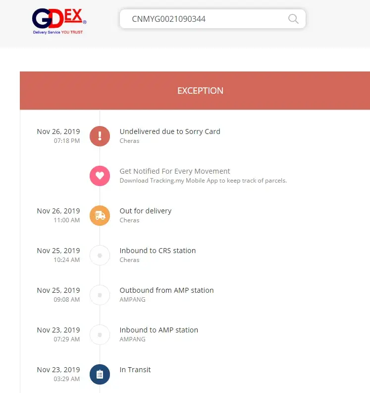 I do not choose to use Gdex services but the sender company chose it.