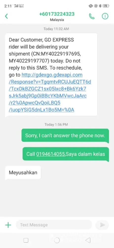 The Gdex rider replied rudely. Refer to the sms reply from him.