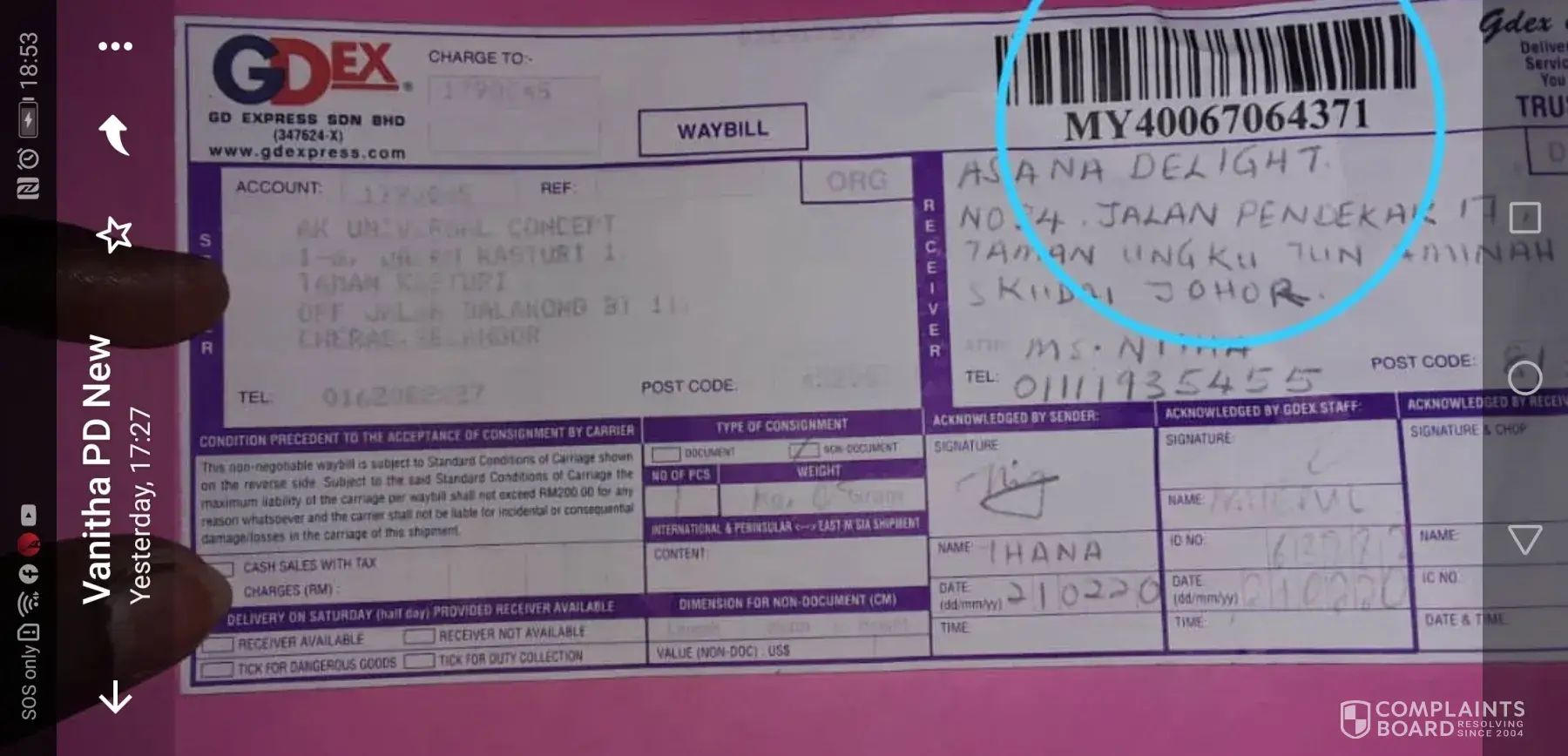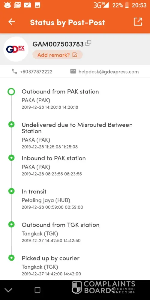 I am disappointed on how GDEX handle this as parcel did mention the POSKOD so big that it is unacceptable for this human error to occur.