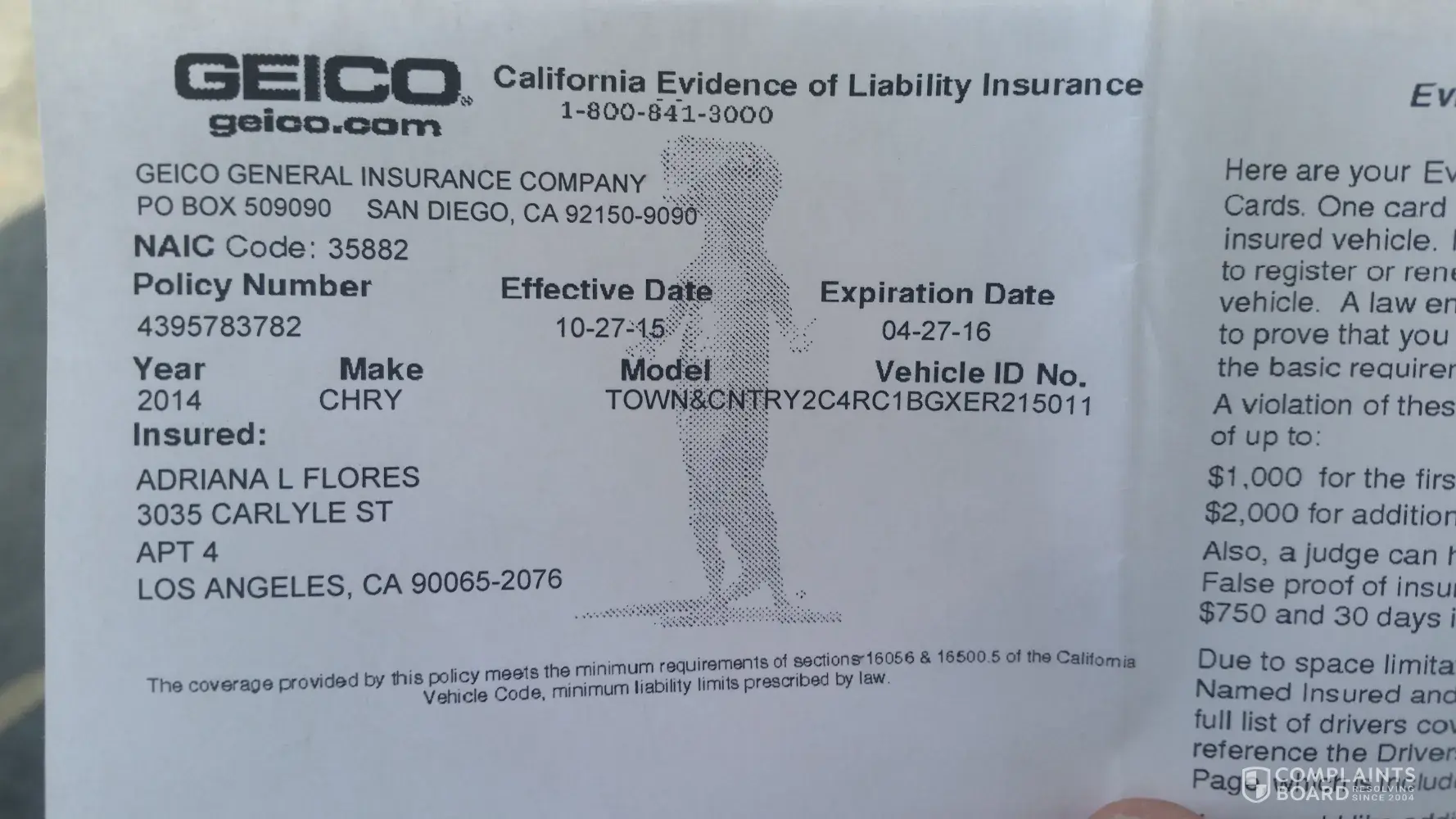 geico has failed to inform the flhsmv about the insurance change