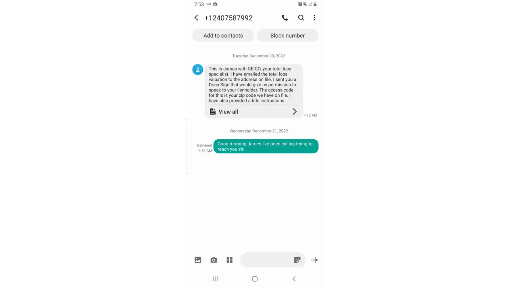 After I clicked on the upload button, only then was I able to minimize the GEICO app. With that app minimized, I was able to verify that the phone call with the GEICO agent was in fact terminated. I can honestly tell you that the call log states that the call lasted a full 5 minutes yet the conversation with the agent only lasted a small fraction of that time. Meaning, GEICO did continue to eavesdrop after pretending to terminate the call. I then turned the heat up in my garage so I could take proper photos without freezing (it is -13F today).