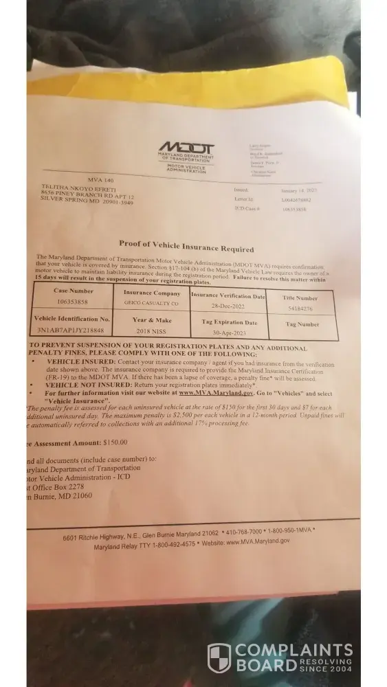 On December 19, 2022 my car was deemed a total loss by Bill the claims adjuster. Montrose Towing yard is where my vehicle was. I had stopped there to pick up some of my property on that Saturday the 17th.I was told to go and pick up my belongs from that vehicle that Same day(mainlyvtags and stickers) I was under the impression vehicle may have been salvageable, but I wasnt even given the courtesy to do so as my when I went to do so the vehicle was already on its way to Coparts auction and junked with my tags and parking stickers still on the vehicle. I couldn't get ahold of anyone as to where vehicle was for a couple days. so I contacted bill who contacted coparts auto in Baltimore. I was texted a tracking number. tags were sent FedEx with my incorrect address. FedEx did not have my full address so my tags were sitting for several days. eventually I had to have them sent to a location for pick up because of wrong address. I finally was able to turn them over to MVA on Jan 14, 2023 where I found out there were fees accessed for tags not being returned. I need this matter taken care of as well as compensation. 150$ is the Fee MVA is charging and I would like my refund. As I was doing everything in my power to get this to them while I was insured.