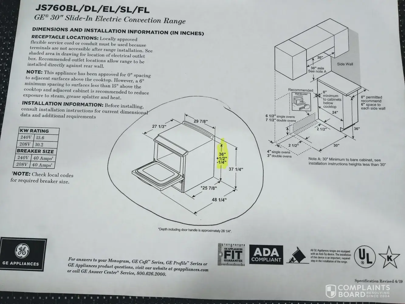 The old spec sheet dated 11/18 came with my stove. GE is trying to squirm out of their responsibility to either give me the stove that has the adjustable legs or fix this one. They say it is not a warranted thing. I say it is a defective range and they won't make good on it. I have email correspondence and Incident # [protected]