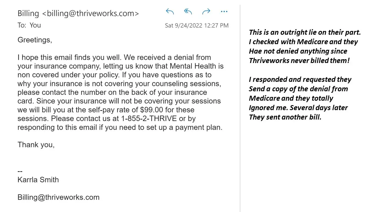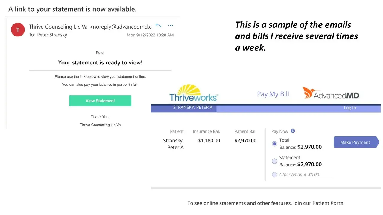 Originally, I thought my account was paid in full when I finished therapy in the beginning of August. They had billed me for an additional $39 on August 16th and when I brought it to their attention that I was no longer a patient, they refunded my money to my credit card. Then I got an email from [protected]@advancedmd.com on Mon 9/12/2022 at 10:28 AM saying...