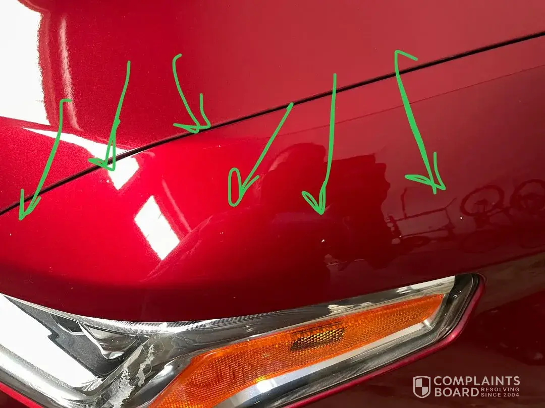 Desired outcome: A new paint job on Chevy's tab, not mine. Reimbursed for what I paid out of pocket to have my hood painted again.