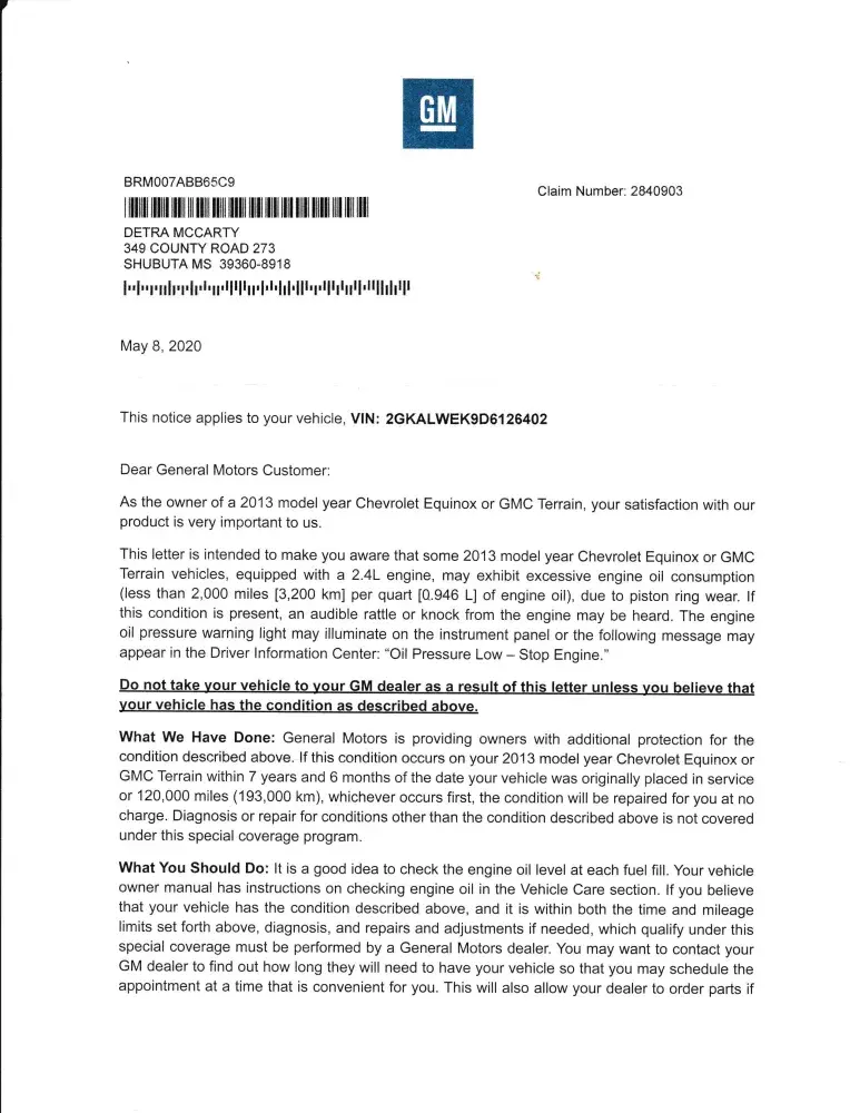 GM customer service said they won't help. Dealer won't help. I see many complaints online of customers with similar complaints.