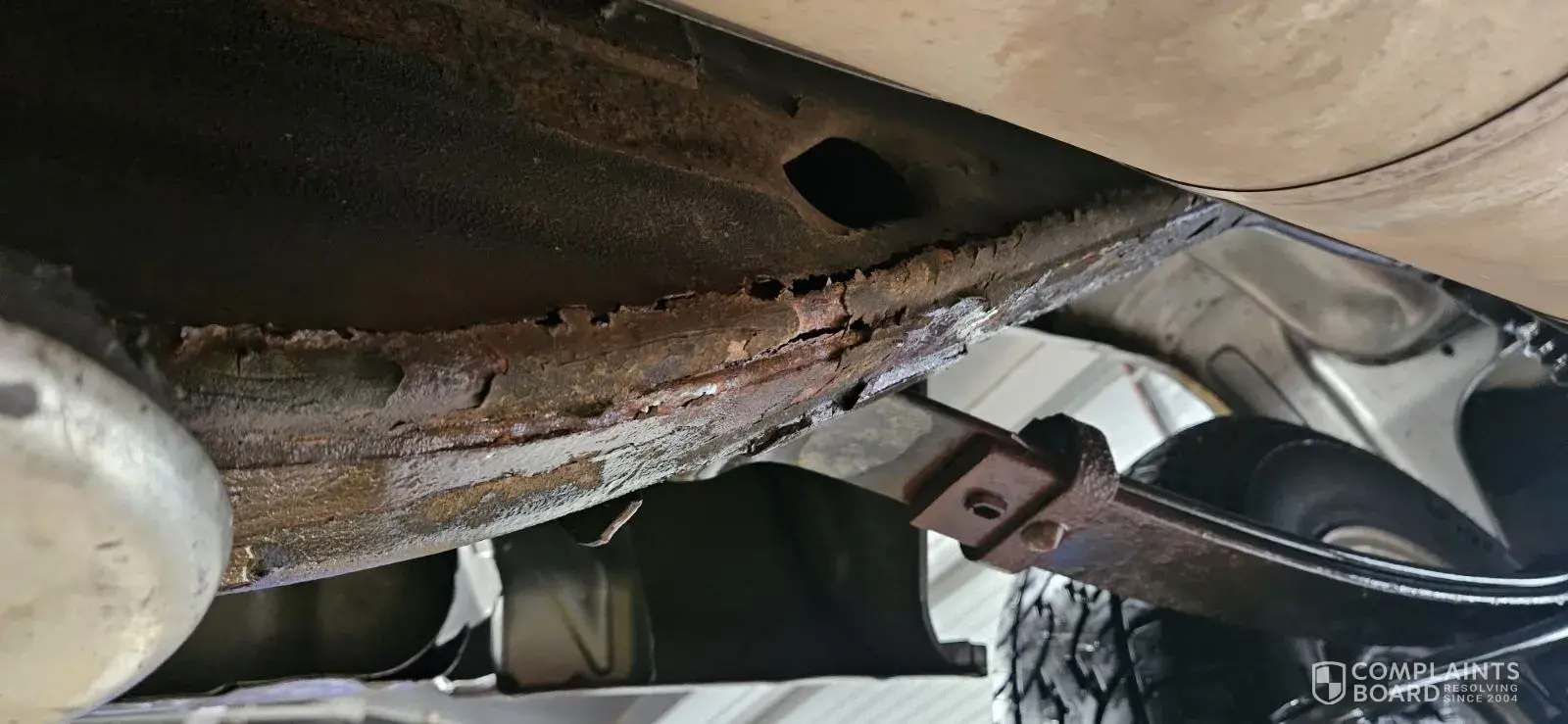 The Truck is a 2013 Silverado that I financed in 2021. Recently I've heard a loud banging noise in the rear of the truck.. thinking it was a bad exhaust hanger bracket I took it to get looked at and repaired.. Truck goes up on lift and to my surprise, the entire cross member was rusted away. The shock wasn't being supported and the actual frame was destroyed due to rust. All on the passenger side. This Truck is 10 years old and unsafe to drive and to put my family in.
