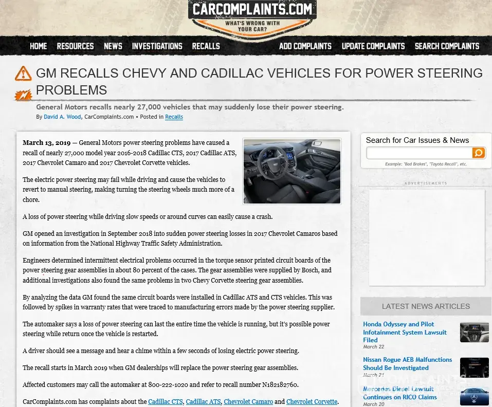 Read full complaintrecall on power steering gm #: n182182760 loss of power steering