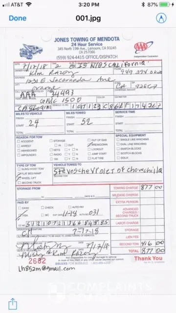 July 17, 2018, while on vacation somewhere in the middle of California, my vehicle shut down, engine light came on and had to pull off the side of the highway. Unable to start the truck, I called for a tow to the nearest GM dealership for diagnostic check and used my AAA membership (vehicle beyond bumper to bumper warranty). 57 miles later and a $877 towing bill, my family and I arrive at Steve's Chevrolet in Chowcilla. The diagnosis was a complete fuel injector malfunction sending metal into the fuel system causing the need for a complete fuel system repair (appx. $8000). Thankfully this fell under the power train warranty. I contacted GM reference the tow fees, and they advised I should have contacted GM roadside assistance instead of another tow service, even though I had no idea this was a warranty issue. I submitted the tow bill, proof of purchase and my vehicle registration as requested. Steve's Chevrolet submitted all paperwork per your request. Two months later I get a refund for $235 and was told by GM, I was lucky to get that. They are standing by that I or any other customer with a malfunctioning vehicle should know when a malfunction falls under warranty and call roadside assistance. All I am asking is for GM to do the right thing, Refund the entire tow cost, since I have found this problem to be extremely common. How is the common citizen to know when a vehicle malfunction is going to fall under warranty, especially when the vehicle is outside the standard bumper to bumper warranty? A dealership near me has stated they are repairing this type of problem twice per week minimum. Claim number 8-[protected]