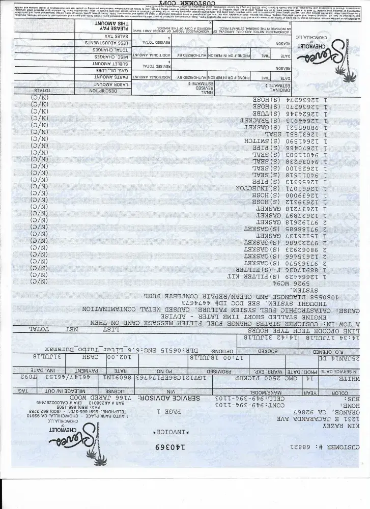 2014 gmc 2500 hd diesel / fuel injector malfunction / complete fuel system rebuild