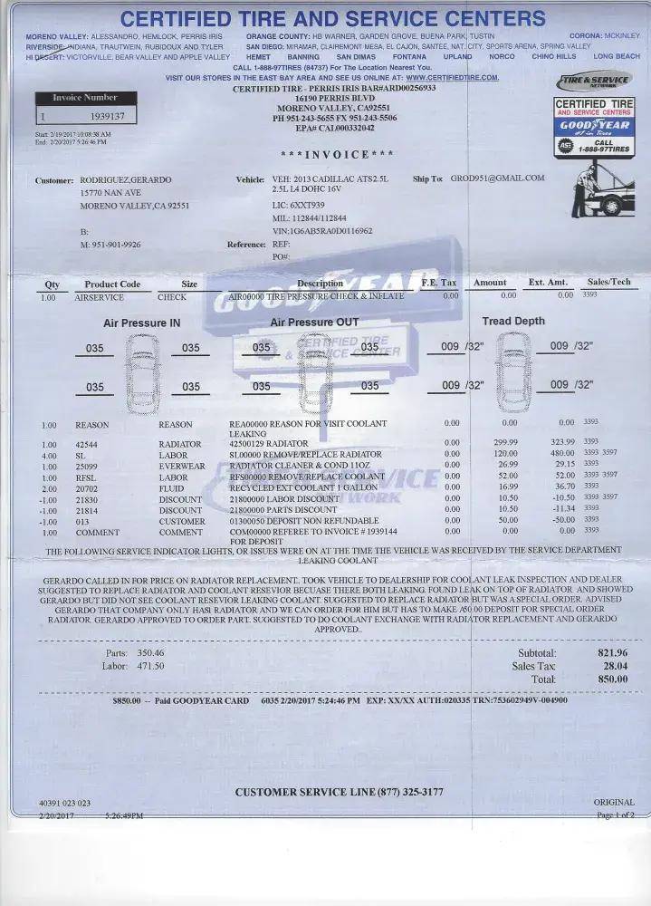 Additionally, charging a shop rate of $135 / hour for 4.5 hours to change an emissions pump and a valve is excessive.